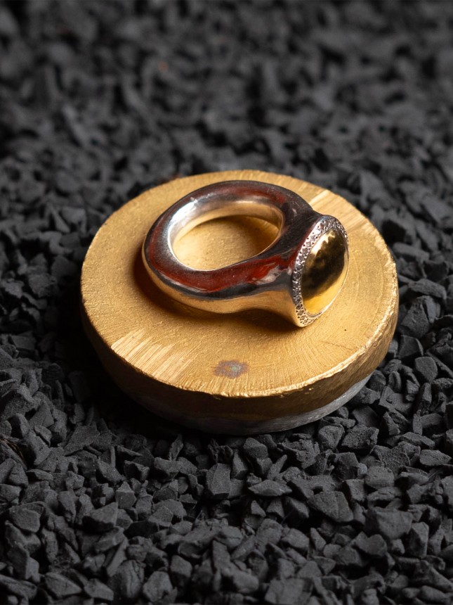 Sterling silver ring - copper - icy Grey Diamonds: 36p, 0,29ct