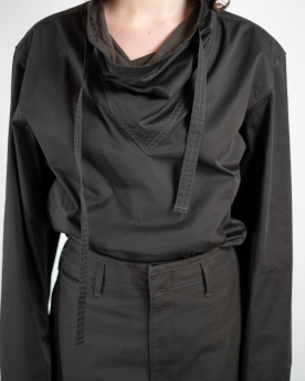 Col montant doté d’un cordon de serrage pour ajuster l’encolure.