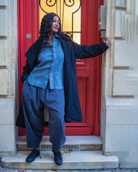 Un classique revisité, ce manteau long allie élégance intemporelle et savoir-faire textile traditionnel.