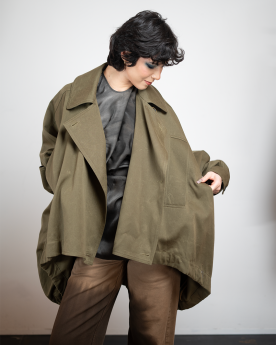 La veste croisée à design asymétrique d’Uma Wang est un manteau‑veste à la fois structurel et contemporain, emblématique de l’esthétique unique de la créatrice. Sa coupe croisée et ses lignes légèrement décalées créent une silhouette moderne, tandis que la qualité de fabrication italienne assure un tombé impeccable et durable.