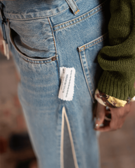 • Coupe : jean, droit, cinq poches, passants de ceinture