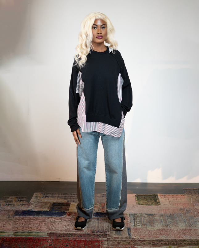 La Pull UP2E1903-2 Undercover se distingue par son mélange audacieux de maille en laine et chemise en coton à accents contrastants. Confectionné en laine et coton premium, il offre une texture douce et structurée, sublimée par une fermeture nippée à l'avant, pour un look contemporain et raffiné.