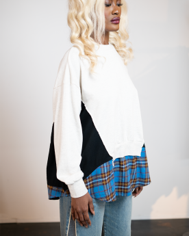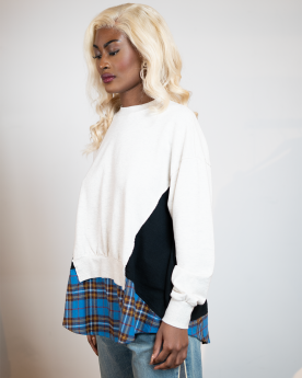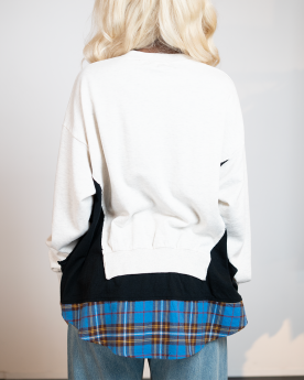 Le Pull molletonnée UP2E1803-1 Undercover se distingue par son assemblage multicolore à panneaux et sa silhouette décontractée, qui apporte modernité et caractère. Confectionné en jersey et flanelle de coton premium, il est sublimé par un col ras du cou, ourlet et poignets en tricot côtelé, ainsi qu'un ourlet pan de chemise.