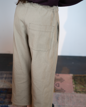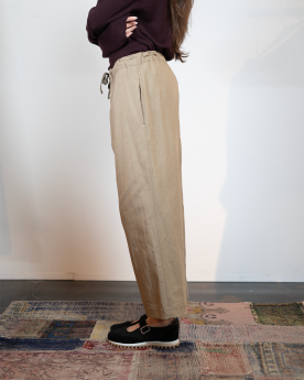 Le Pantalon beige Y's se distingue par sa silhouette décontractée et épurée et sa taille ajustable à cordon, qui apporte confort et style moderne. Confectionné en coton et lin, parfaite pour une tenue polyvalente et élégante au quotidien.