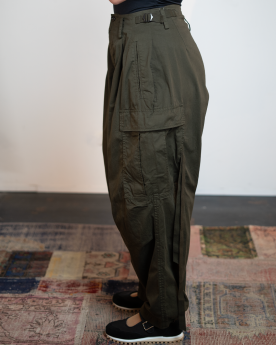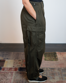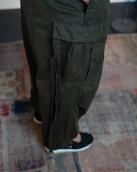 Le Pantalon Cargo kaki de Y's se distingue par sa silhouette utilitaire moderne et ses détails fonctionnels aux ourlets et à la taille, qui permettent un ajustement personnalisé et un look structuré. Confectionné en coton 100%, il offre une texture robuste et confortable, parfaite pour un style décontracté mais travaillé.