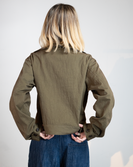 Le Blouson kaki de Y's se distingue par sa silhouette structurée et moderne, qui allie style urbain et fonctionnalité. Confectionné en coton et nylon, sublimée par une coupe droite, parfaite pour compléter des looks décontractés ou sophistiqués.