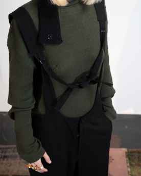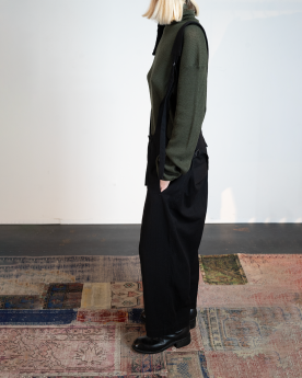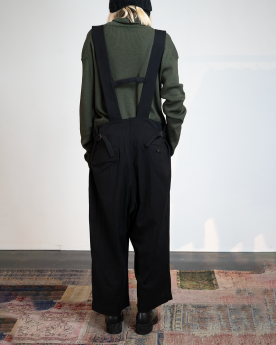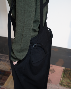 L'Overall noir Y's se distingue par sa silhouette de salopette fluide et ses bretelles réglables, qui apportent une touch à la fois graphique et contemporaine. Confectionné en coton et rayonne, il offre une texture douce et légère, sublimée par une coupe décontractée, pour un look minimaliste et expressif, fidèle à l'esthétique Y's.