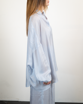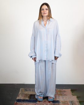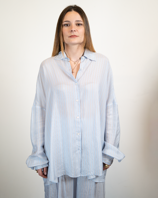 Chemise fluide en cupro à la texture soyeuse et légère, offrant un tombé naturel et élégant. Sa teinte azur apporte une note fraîche et lumineuse à la silhouette.