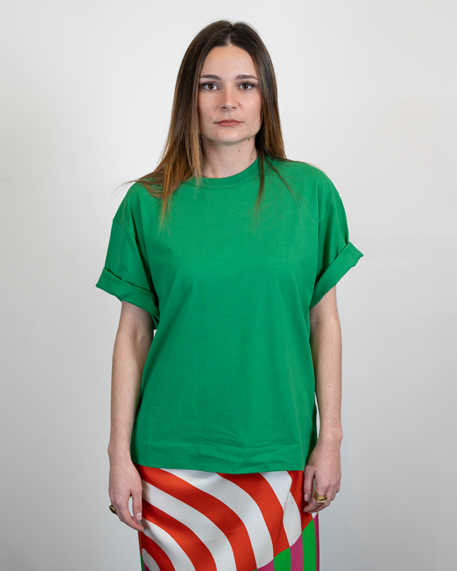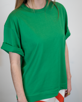 T-shirt à manches courtes en coton, décliné dans une teinte verte naturelle et subtile.